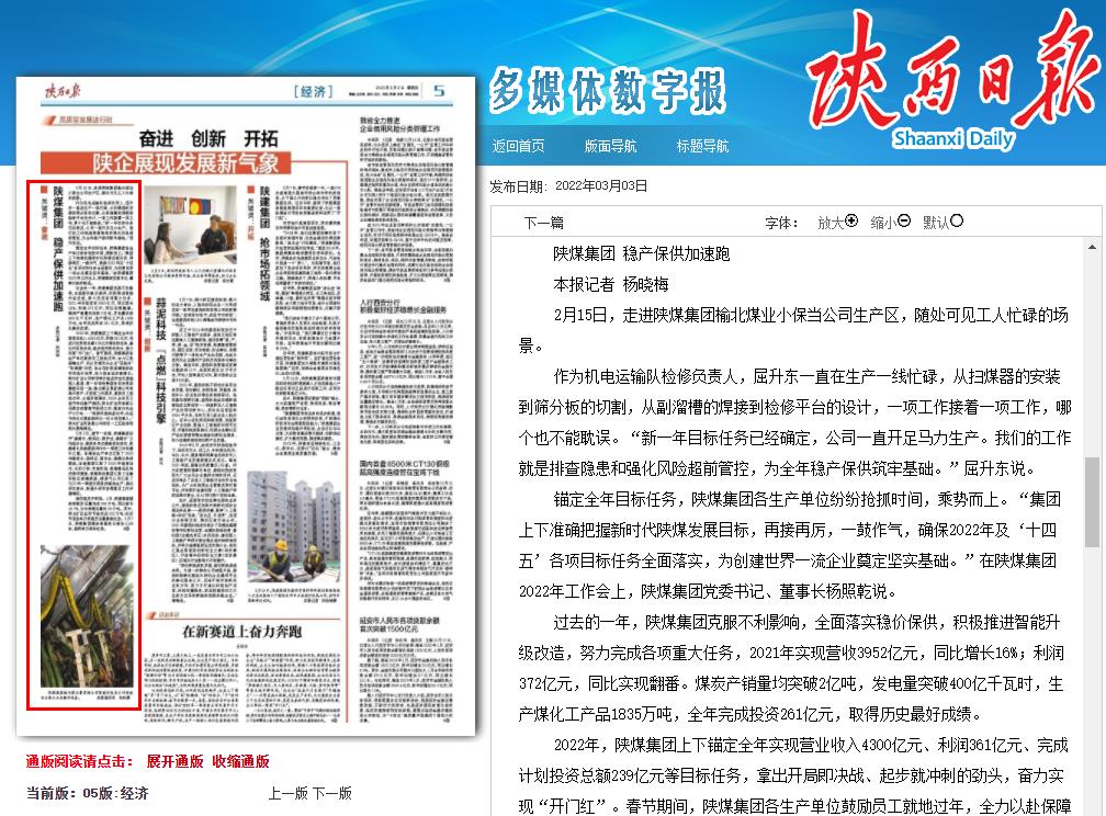 陜煤集團穩(wěn)產(chǎn)保供加速跑