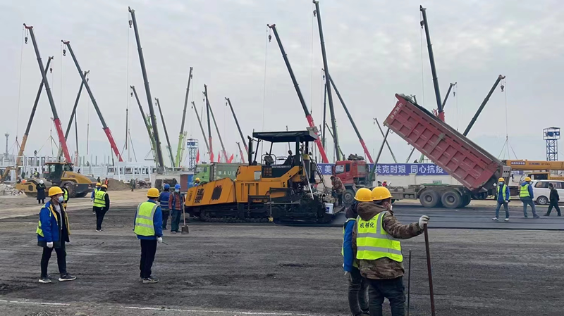 20211229日上午,我公司接到陜建華山路橋的緊急通知,參建西安市高新區(qū)方艙醫(yī)院項目,在疫情蔓延形勢復雜嚴峻的情況下,防控工作刻不容緩,我公司立即將參建放艙醫(yī)院作為一項特殊時期重要、緊急、光榮的任務,高度重視、迅速響應。各部門職工紛紛主動請纓,積極投身方倉醫(yī)院建設。由于疫情影響,面對原材料短缺、勞務人員短缺,我們克服了重重困難,迅速集結了30余名管理人員組成施工突擊隊,第一時間奔赴現(xiàn)場。當天下午4點,組織包括兩臺ABG8620瀝青攤鋪機、同步碎石封層車、雙鋼輪壓路機、膠輪壓路機、及小型前鋼后膠壓路機等機械設備已進入工地現(xiàn)場。同時前場技術員、施工員、安全員、后勤員、運輸隊均已進入各自工作崗位。1229日起,連夜生產8000余噸二灰碎石混合料,道路面層采用瀝青混合料進行鋪設,生產成品瀝青混合料5000余噸,經過全體人員不分晝夜,緊張有序的連續(xù)施工,高新區(qū)放艙醫(yī)院項目順利完成。