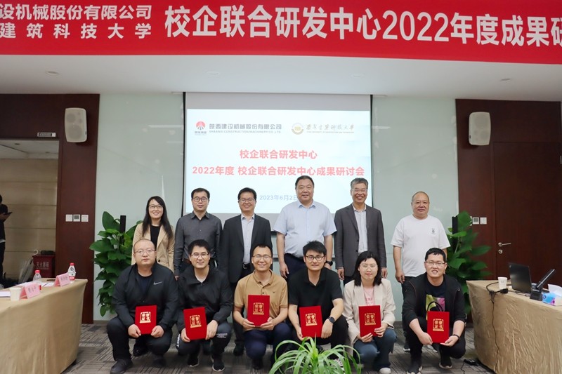 日前,陜建機(jī)股份與西安建筑科技大學(xué)校企聯(lián)合研發(fā)中心(以下簡稱“研發(fā)中心”)舉辦了“2022年度成果研討會(huì)”。西安建筑科技大學(xué)機(jī)電工程學(xué)院黨委書記吳昊、院長朱麗華、副院長李玲;陜建機(jī)股份黨委書記、董事長楊宏軍、副總經(jīng)理賀衛(wèi)東、技術(shù)顧問劉帝芳、工程機(jī)械研究院技術(shù)骨干參加會(huì)議。